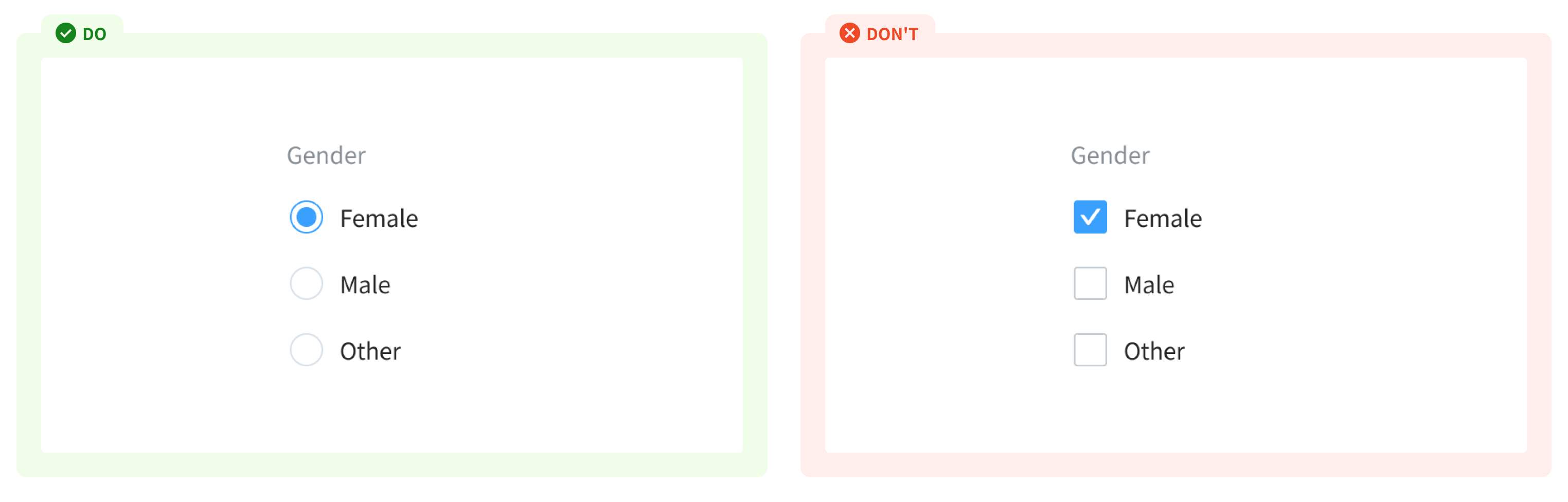 - In some cases, a group of checkboxes may be within a larger group of components that already have a group title. In this case, the title is not needed.