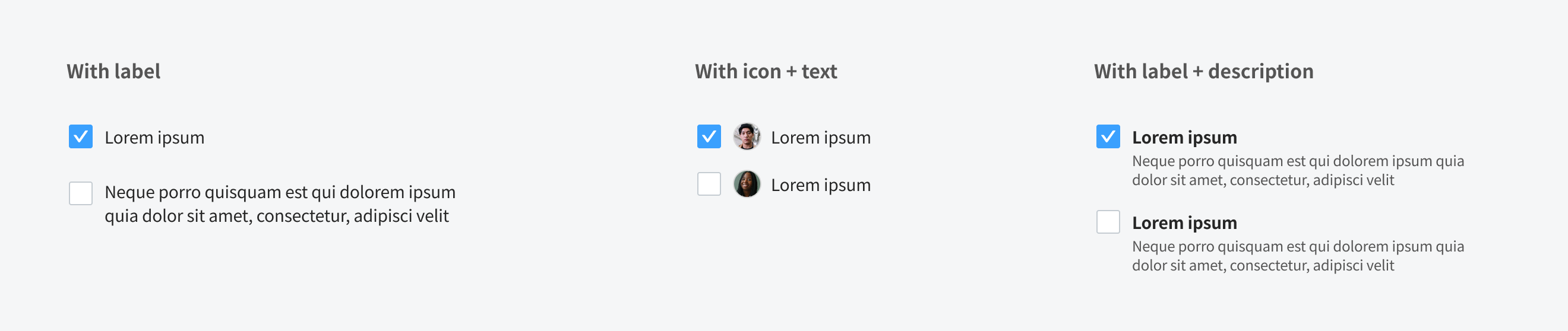 - When using a line break, the checkbox is horizontally aligned with the first line of the label